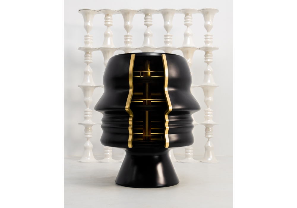 Ego firmato da Karim Rashid per Scarlet Splendour è un mobile contenitore realizzato in compensato, metallo ed ottone.
