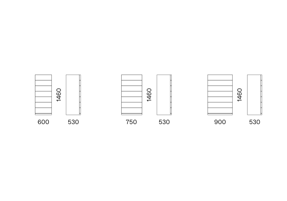 | Dimensioni | 60 x 53 x H 146 cm; 75 x 53 x H 146 cm; 90 x 53 x H 146 cm. |