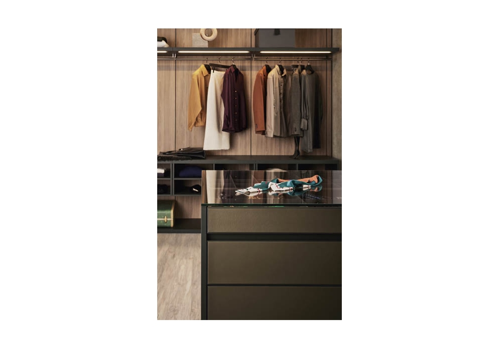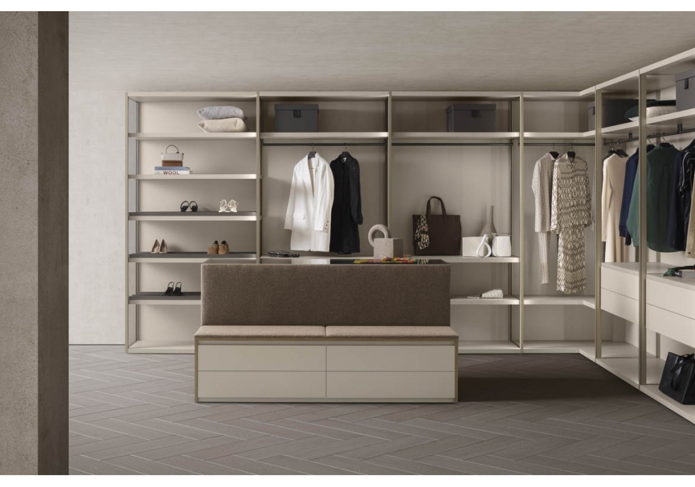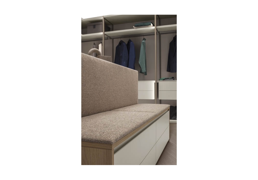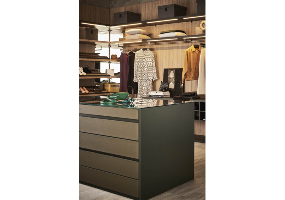 Island Up firmato da Pianca è un mobile contenitore. Un modulo free-standing perfetto complemento delle cabine armadio che, come nelle più esclusive boutique, custodisce accessori preziosi e gioielli. Molteplici le tipologie di oggetti e capi che possono essere riposti al suo interno, grazie all’ampia possibilità di personalizzazione offerta dai complementi disponibili: cassetti, teche in vetro, ripiani, vassoi contenitori, porta scarpe. Pratica e funzionale nella versione con panca integrata: una comoda ed elegante soluzione, per offrire attimi di relax, immersi in un’atmosfera calda e ricercata.