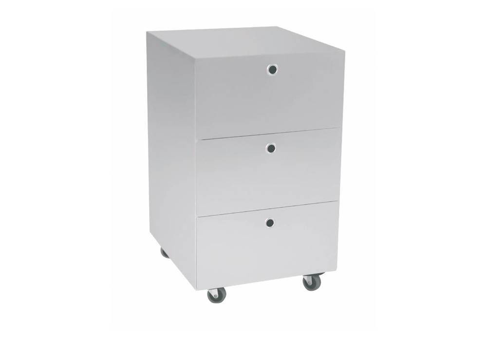 La collezione di cassettiere firmate da Kriptonite è realizzata con struttura in legno e rivestimento in alluminio. Cassetti interni in multistrato di betulla. Disponibili con ruote o con piedini.