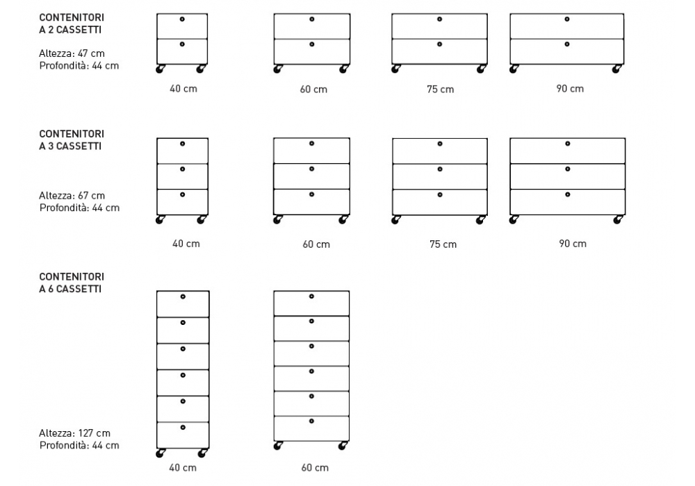 | Larghezza | 40 cm; 60 cm; 75 cm; 90 cm. |