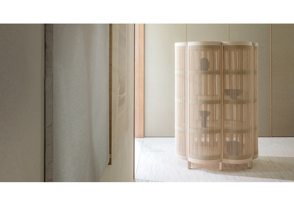 Nuvola firmato da AMDL Circle per Paola Lenti è un mobile contenitore bifacciale a quattro ante. La struttura è in massello di frassino naturale con ripiani fissi in legno listellare rivestito in frassino. Cernicere in acciaio verniciato. In corrispondenza dei ripiani, le ante sono intrecciate a mano con corda in filato Rope.