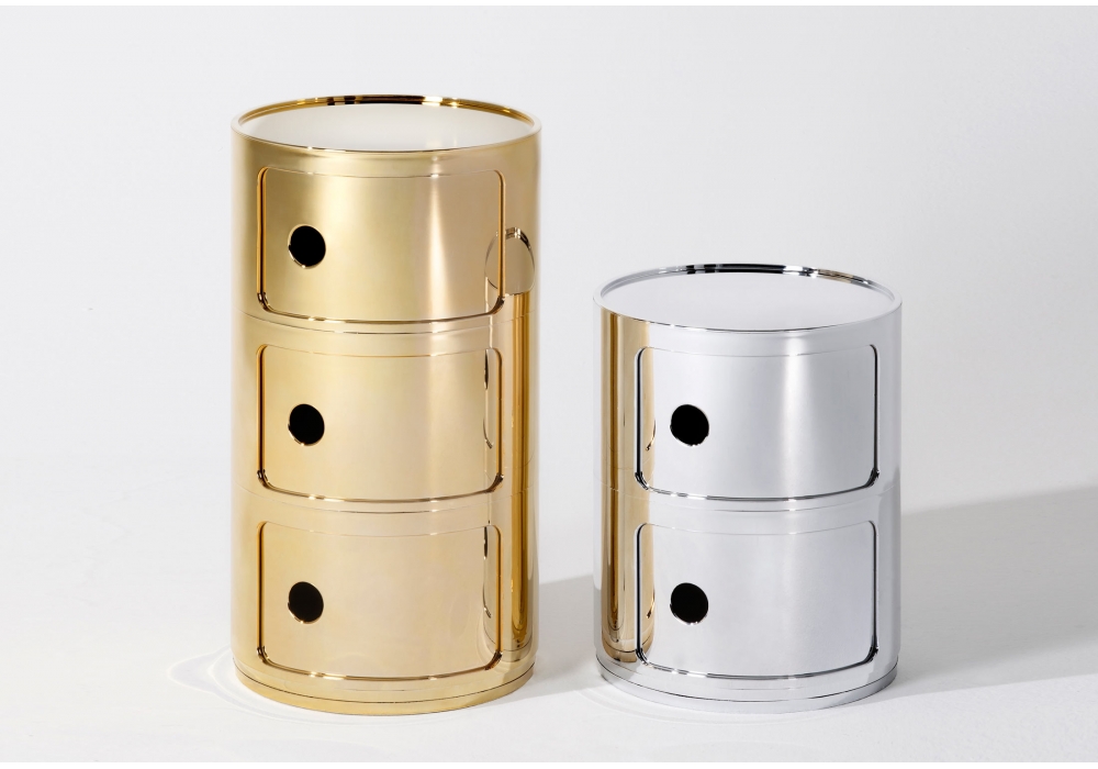 Componibili Metal firmato da Anna Castelli Ferrieri per Kartell è un mobile contenitore realizzato in ABS metallizzato. Disponibile in diverse finiture e dimensioni.