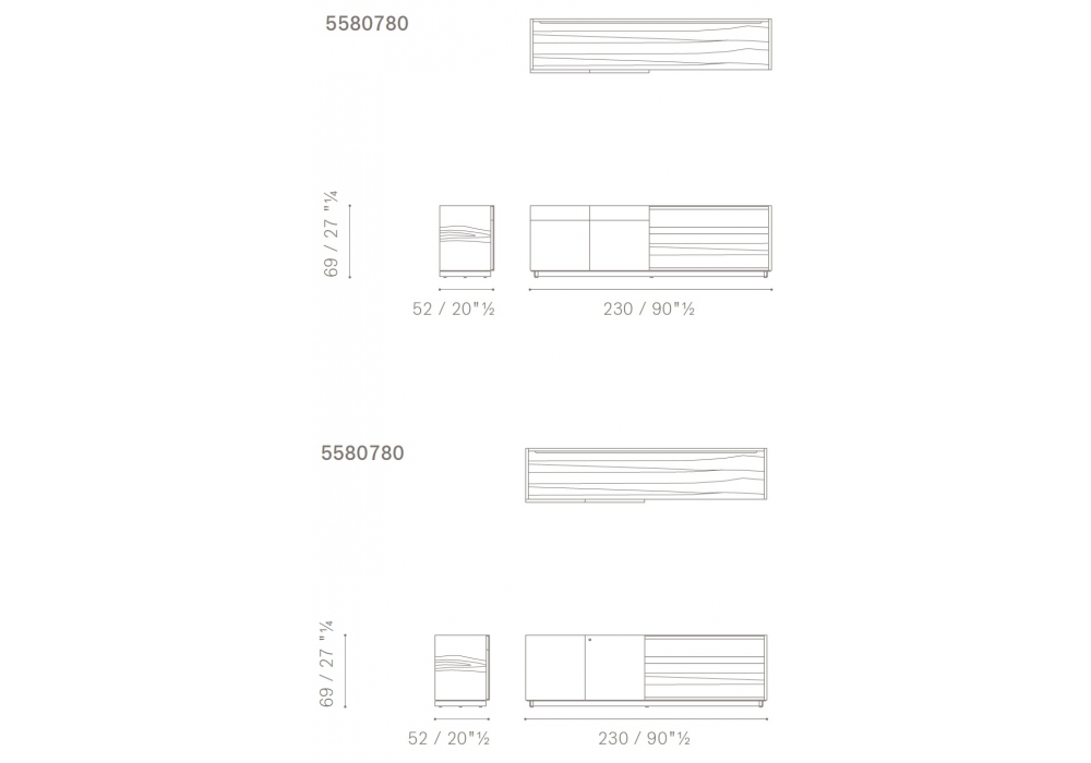 Rodolfo Dordoni inaugura la collaborazione con Poltrona Frau, disegnando il sistema d’arredo direzionale Jobs. Jobs è un sistema direzionale di scrivanie, mobili e tavoli riunione. Il Low Cabinet ha la struttura realizzata in pannello di fibra di legno a media densità impiallacciato in Rovere Piombo o Rovere Tabacco con finitura lucida ad eccezione del top rifinito con finitura opaca. La base è in acciaio satinato verniciato piombo. Il retro del Cabinet è dotato di uno sportello ribaltabile che consente l’accesso ad un piccolo vano interno utile alla fuoriuscita dei cavi che, dal pavimento, salgono fino al top attraverso la fessura presente lungo tutta la lunghezza del piano. Il Low Cabinet è disponibile in due lunghezze, da 230 cm e da 284 cm, entrambe disponibili in due varianti diversamente equipaggiate. La prima è equipaggiata sul lato sinistro con 2 cassetti e 2 classificatori ad estrazione totale e rientro ammortizzato con frontale rivestito in Pelle Frau® del Color System e struttura interna verniciata nero testurizzato antigraffio. In questo caso la dimensione da 230 cm presenta sul lato destro un vano a giorno con mensola interna mentre la dimensione da 284 cm ha il vano a giorno centrale e un’anta, rivestita in Pelle Frau® del Color System, sul lato destro dotata di serratura a chiave posizionata frontalmente. La seconda versione dei Cabinet è equipaggiata, nella versione da 284 cm, con 3 ante e un vano giorno centrale dotato di mensola e, nella versione da 230 cm, con 2 ante e un vano giorno sul lato destro. Le ante sono sempre rivestite in Pelle Frau® del Color System e munite di serrature a chiave posizionate frontalmente: due serrature nel caso del Cabinet da 284 cm (una per la coppia di ante di sinistra ed una per la singola anta di destra) e una nel caso della dimensione da 230 cm (posta sull’anta di destra per la chiusura della coppia di sportelli)