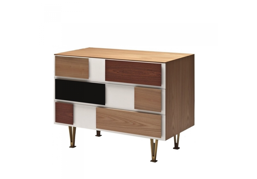 D.655.2 firmata da Gio Ponti per Molteni&C è una cassettiera caratterizzata dai frontali dei cassetti verniciati a mano in colore bianco con maniglie applicate di varie essenze (olmo, noce nazionale, mogano e palissandro). La struttura in essenza di olmo è sostenuta da piedi in ottone satinato.