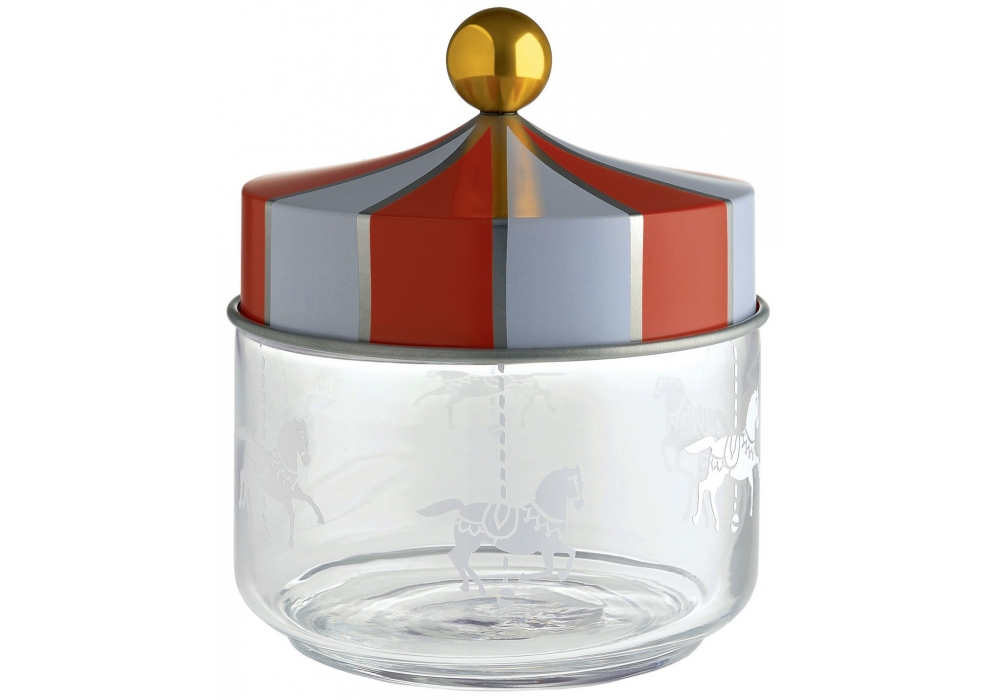 Circus firmato da Marcel Wanders per Alessi è un barattolo ermetico in vetro serigrafato con coperchio in banda stagnata. Disponibile anche in 4 dimensioni.