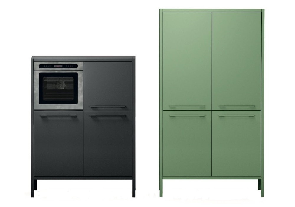 Frame Tall Units firmata da Salvatore Indriolo per Fantin è una colonna per cucina in metallo disponibile in due altezze e in due larghezze, possono essere dotate di ante, cassetti ed elettrodomestici, senza limiti compositivi. Struttura disponibile in diverse finiture.