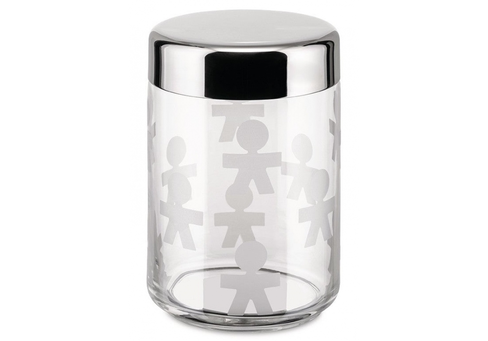 Girotondo firmato da King-Kong per Alessi è un barattolo ermetico in vetro serigrafato con coperchio in acciaio inox 18/10. Disponibile in 4 dimensioni.