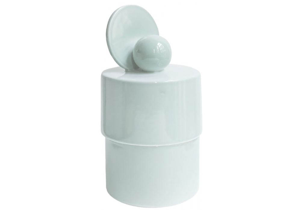 Mademoiselle Georges N°2 firmato da Thomas Dariel per Maison Dada è un box decorativo di forma cilindrica strutturato in iceramica verniciata verde celadon.