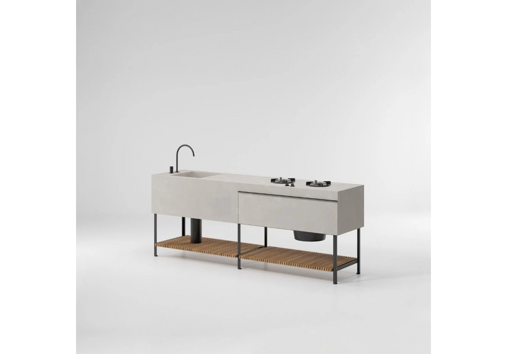 Base Kitchen firmata da Kettal Studio è una cucina da esterno modulare disponibile in differenti configurazioni. Include cucina con fornelli a gas, barbecue, piano lavello, piano di lavoro e ripiano inferiore in teak. Per una configurazione personalizzata, si prega di contattare il nostro servizio clienti.