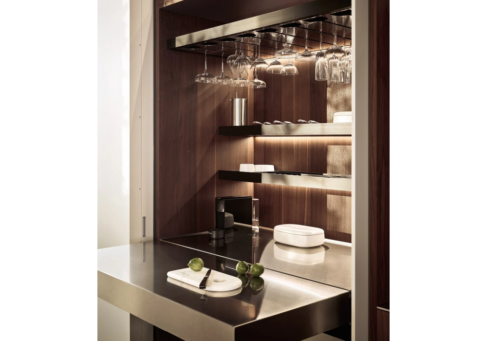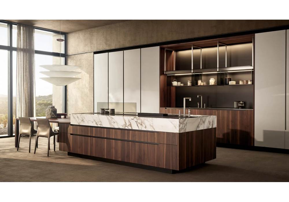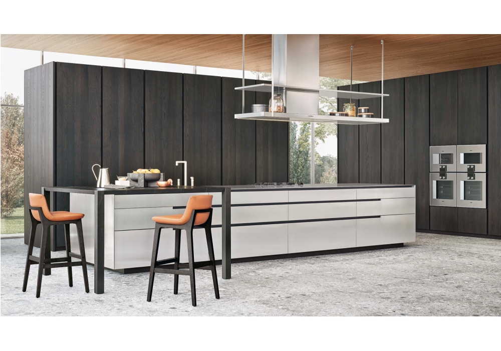 Phoenix di Poliform è una cucina dal disegno essenziale, ispirato dalla geometria più pura per un progetto caratterizzato da semplicità e rigore. Le ante posso essere in corian, acciaio, essenza, massello, laccato metallico, laccato goffrato o laccato lucido. Piani in essenze, laminato, corian, acciaio, marmi, quarzi, pietre o dekton. Piani snack in laccato goffrato, corian, pietre, marmi, essenze o laminato.