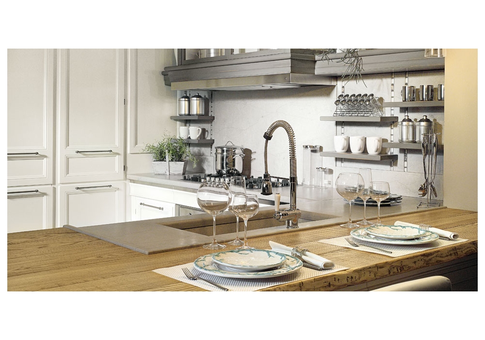 Living Design firmata da L'ottocento è una cucina che arricchisce con dettagli curati e finiture pregiate il gusto classico dei singoli arredi. Disponibile in diverse finiture e composizioni.