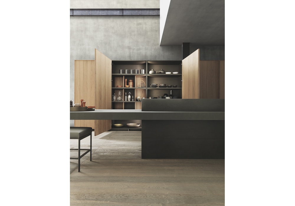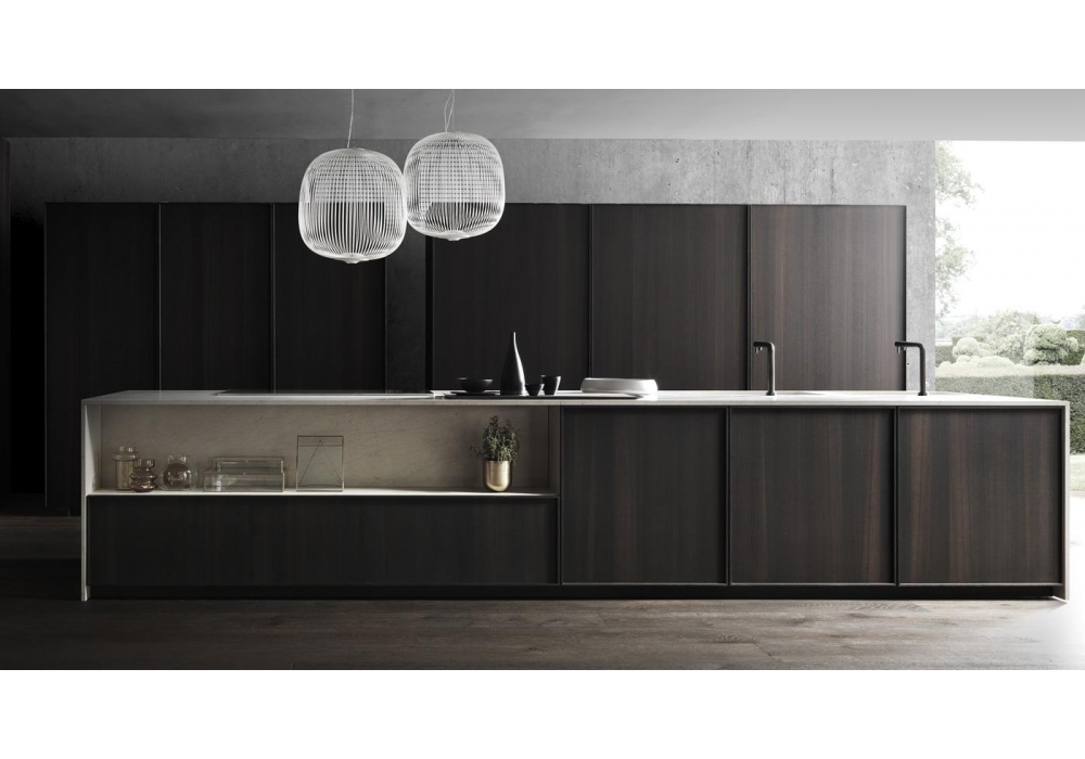 Frame firmata e prodotta da Modulnova è una cucina di nuova concezione, con anta telaio sottile e maniglia ricavata nel perimetro. La grande isola centrale è orizzontale con penisola a sbalzo, completata da colonne raffinate ed eleganti. L'accostamento di svariati materiali la rende una cucina funzionale e pratica. Contatta il nostro Customer Service per creare la tua Frame, con le caratteristiche che preferisci.