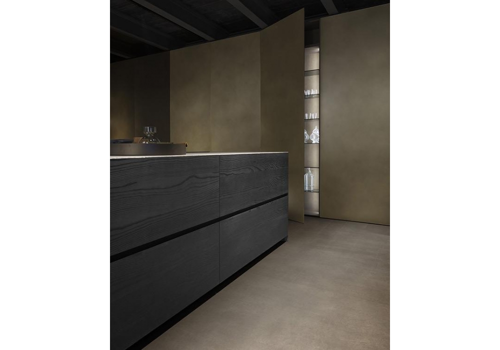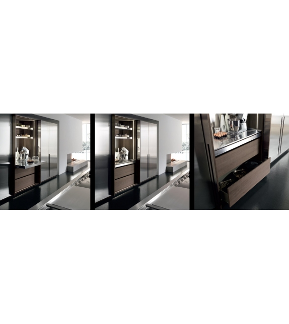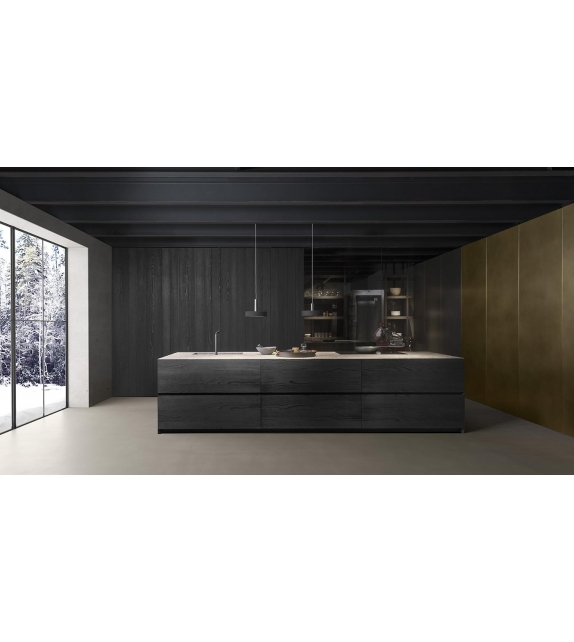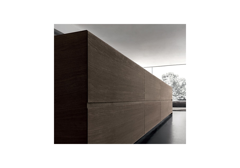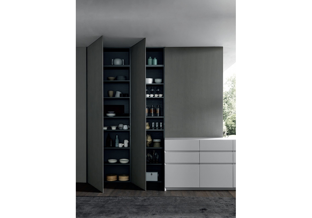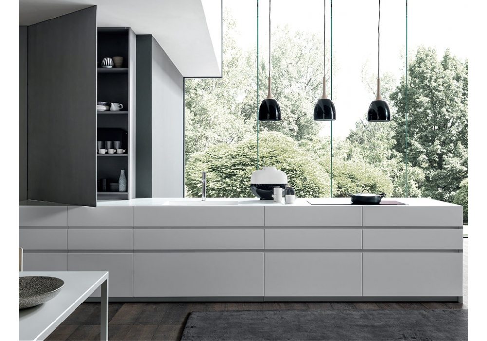 Fly firmata e prodotta da Modulnova è una cucina con top realizzato in Corian, fenix, acciaio o altri materiali, e basi in rovere, resina o laccato satinato. Le ante sono caratterizzate da uno o più lati con bordi smussati a 45° che, se accostati a fianchi e piani controsagomati, permettono di creare un monolite senza spessori in vista. Montanti in ferro sottili abbinati a mensole spesse costituiscono una pratica struttura a giorno. Inserto su top in acciaio inox con lavello integrato e piano cottura, installato a filotop e bordo smussato a 45° che, oltre a raccordare i frontali con il top e i fianchi, funge anche da impugnatura per l’apertura dell’anta o del frontale. Contatta il nostro Customer Service per creare la tua Fly, con le caratteristiche che preferisci.