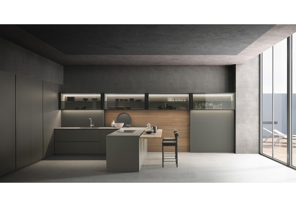 Light firmata e prodotta da Modulnova è una cucina realizzata in modo da integrarsi con l'ergonomicità degli spazi, coniugando l'eleganza delle finiture e delle cromie. Il sistema Wall è una parete attrezzata che arricchisce la cucina con varie situazioni progettuali, nello spazio tra basi e pensili. I pensili sono a ribalta, con finitura in laccato satinato o altri materiali. Si possono integrare meccanismi a scomparsa e scorrevoli. I piani e le altre parti sono disponibili in marmo, gres, Fenix e tanti altri materiali. Contatta il nostro Customer Service per creare la tua Light, con le caratteristiche che preferisci.