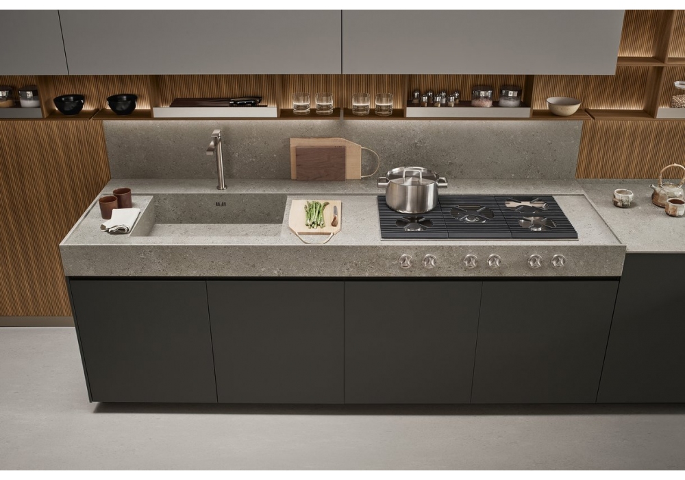 Sign 04 firmata da Ernestomeda è una cucina. Arreda tutta la parete appoggiandosi alla moderna boiserie. La composizione che si sviluppa su un solo lato, con la disposizione di tutti gli elementi della zona operativa affiancati, conferisce un’immediata visione del design di Sign, sofisticato e funzionale.