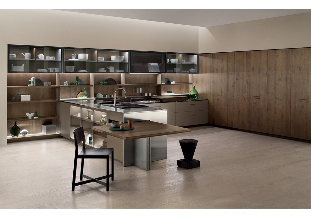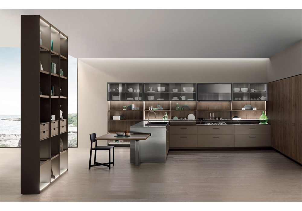 Soul 02 firmata da Ernestomeda è una cucina disponibile in una vasta scelta di materiali e finiture rendendo ogni progetto unico. La fusione tra cucina e living è resa fluida grazie a elementi modulabili come il sistema di scaffalature Medley che può essere utilizzato in molteplici configurazioni.
