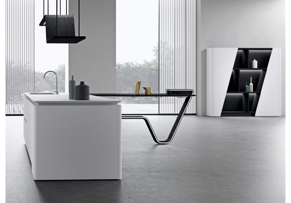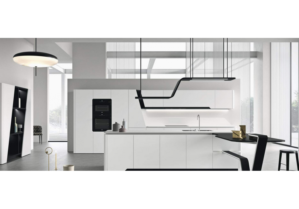 Vision firmata da Snaidero è una cucina dal concept che interpreta la moderna espressione degli spazi domestici continui, con superfici che scorrono senza soluzione di continuità e materiali che trasmettono un immediato senso di purezza e sensorialità.