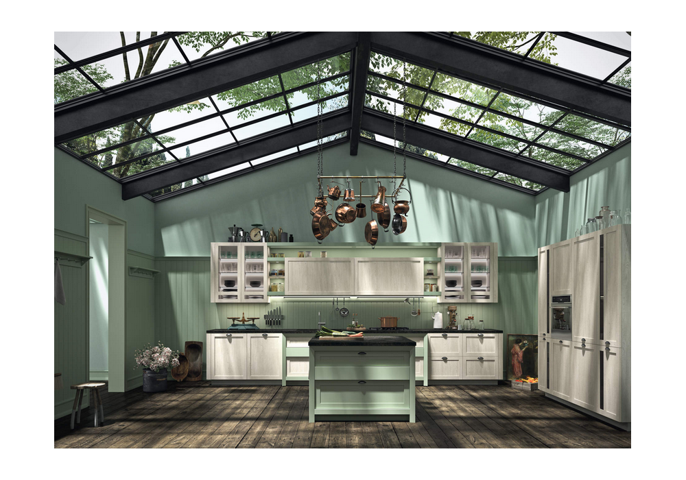 Hera firmata da Michele Marcon per Snaidero è una cucina in stile country dà il meglio di sé negli ambienti ampi e spaziosi, dove è possibile prevedere tutti quei moduli che concorrono maggiormente a individuare lo stile: i vani a giorno, in particolare, rappresentano un dettaglio importante per progettare spazi funzionali e di contenimento a vista.