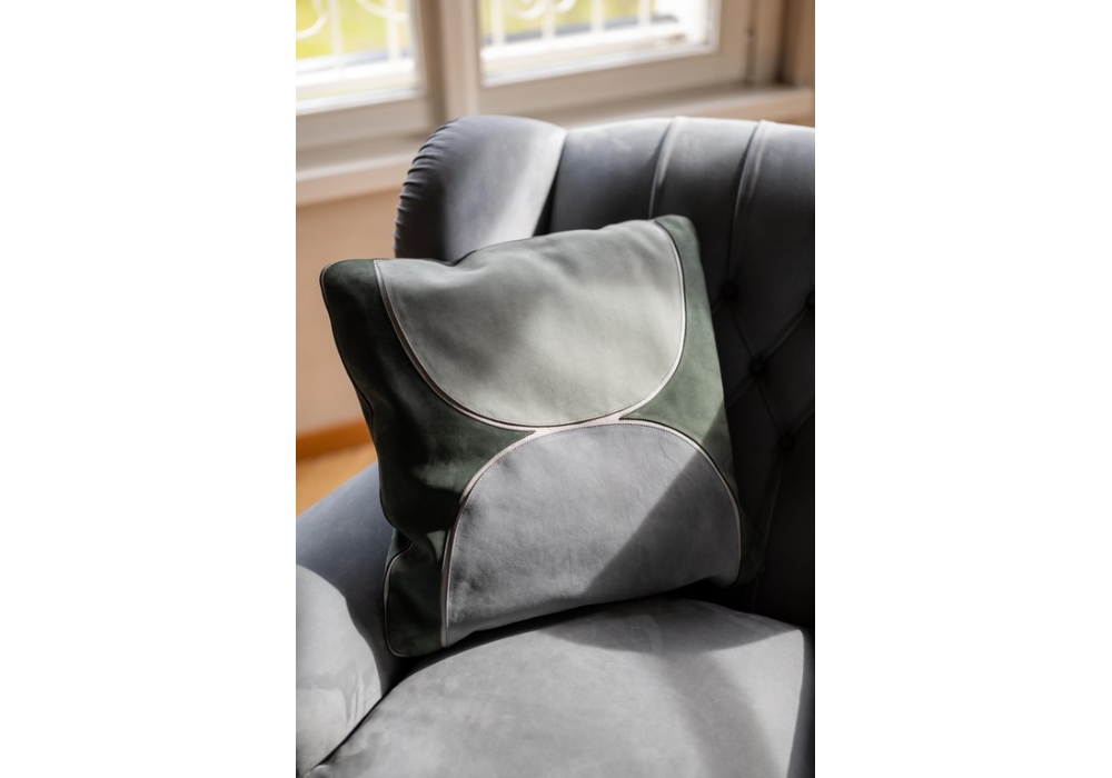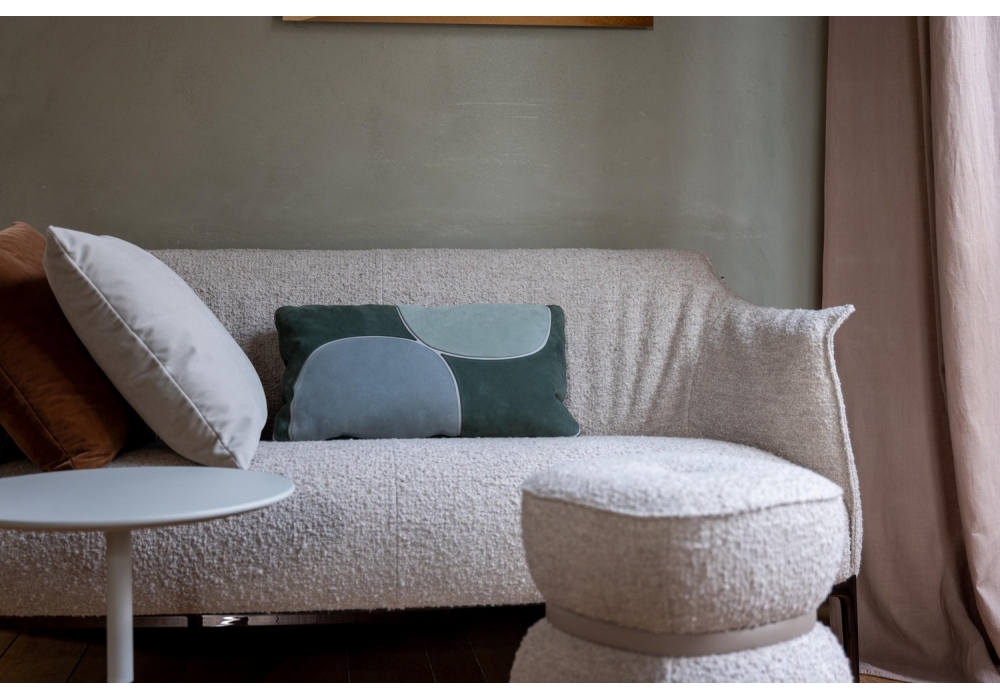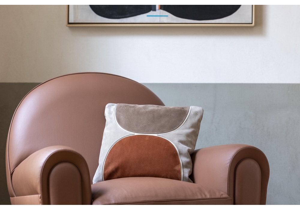Ikiperu firmato da Kristine Five Melvær per Poltrona Frau è un cuscino rivestito in una combinazione di diverse pelli. Il disegno con figure in rilievo è in Pelle Frau® Velvety su fondo in Pelle Frau® ColorSphere®.