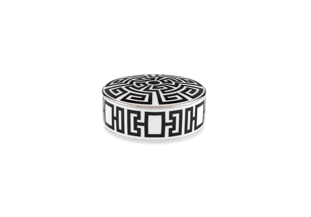 Scatola Talco Labirinto Nero firmata da Ginori 1735 è una scatola rotonda decorata con coperchio.