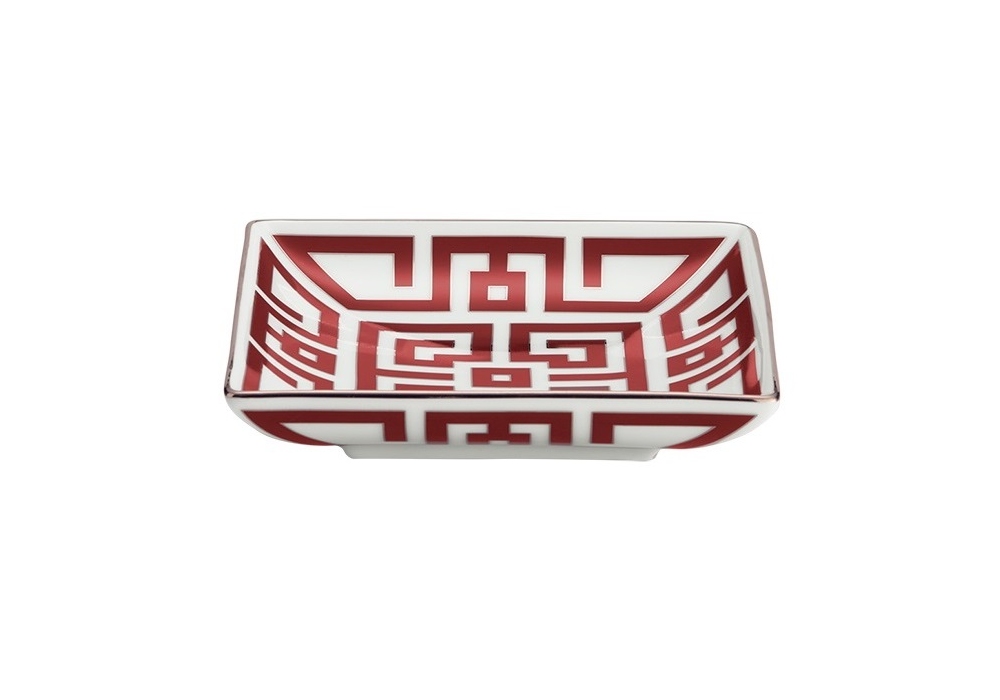 Coppa Quadrata Bassa Labirinto Scarlatto firmata da Ginori 1735 è una coppa quadrata bassa decorata.
