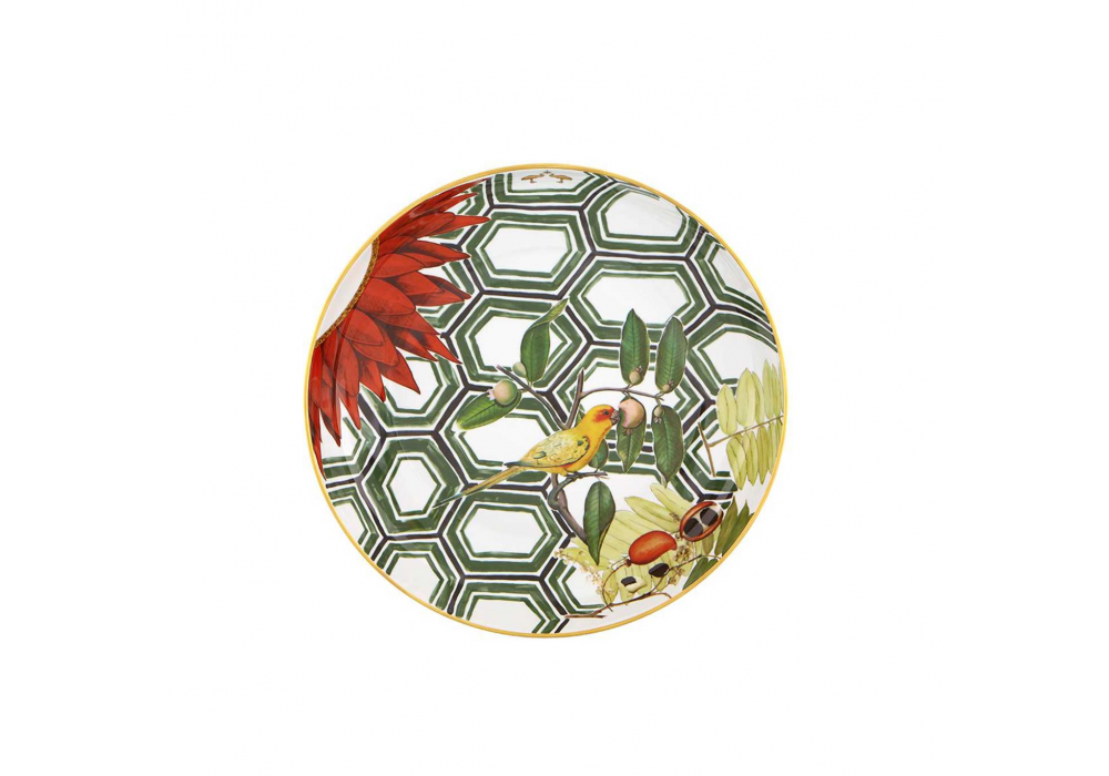 Amazonia firmato da Vista Alegre con Ecoarts è un centrotavola realizzato in porcellana con decori ispirati alla flora ed alla fauna.
