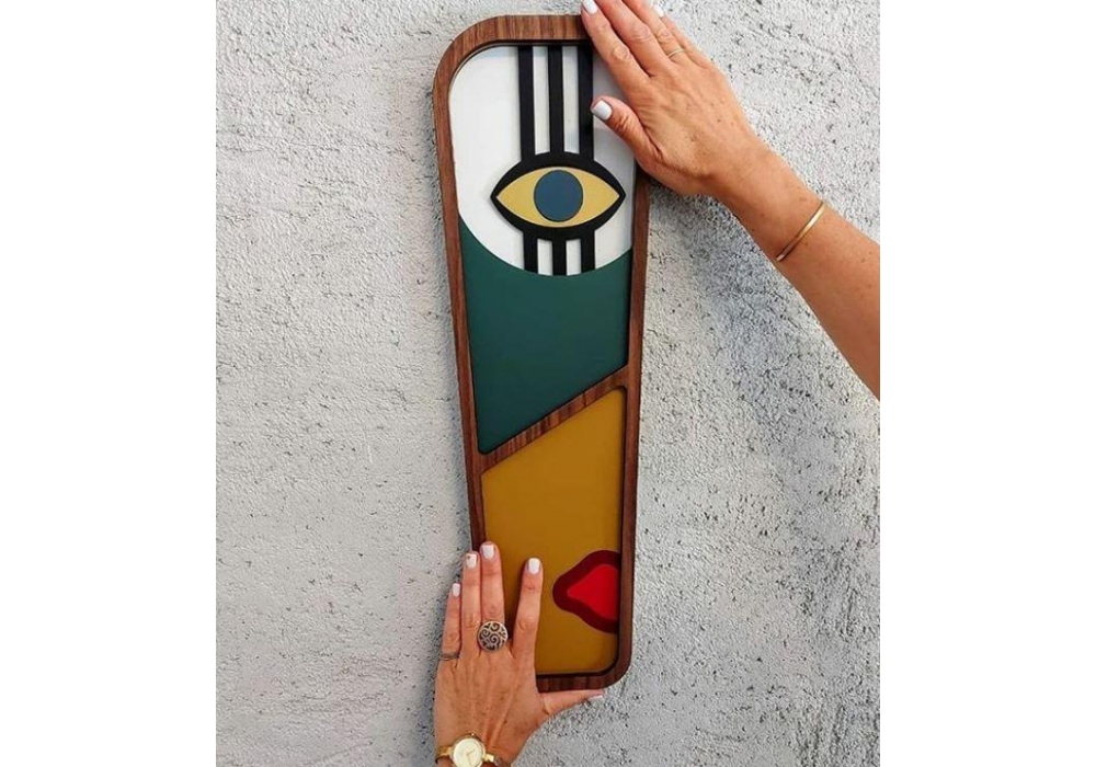 Abstrasso 9 firmata da Tzachi Nevo per Umasqu è una maschera decorativa in legno fatta a mano ispirata a Picasso, al cubismo, alle forme e ai contorni: le composizioni di colori di Abstrasso Mask #9 creano combinazioni uniche di profondità sulla superficie. Appendilo come pezzo singolo o combinalo con altri pezzi d'arte, questa maschera da parete sarà il centro di ogni stanza.