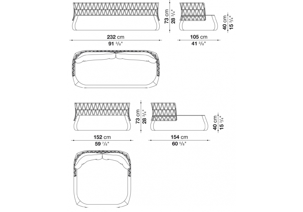 | Dimensioni | 152 x 154 x H 76 cm; 232 x 105 x H 76 cm. |