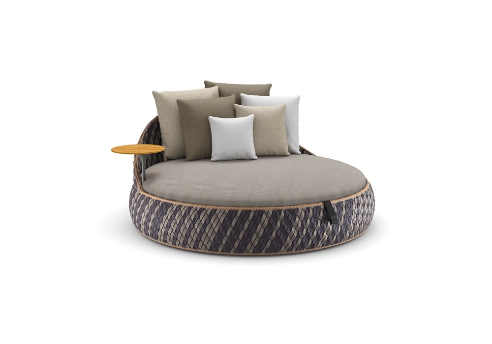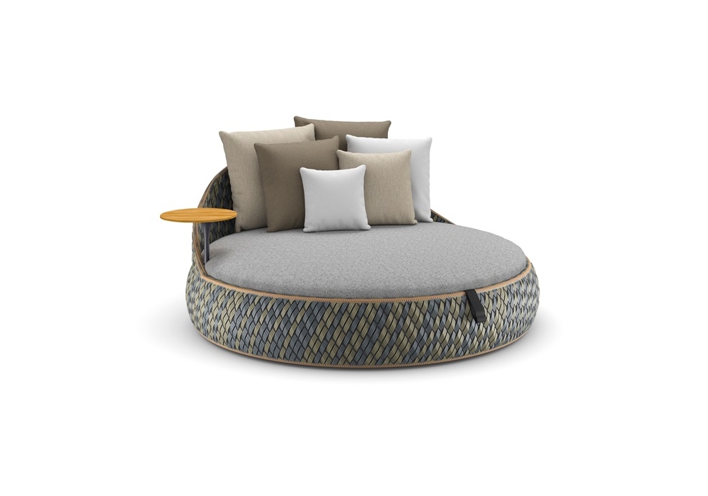 Progettata da Stephen Burks per Dedon, l'isola Dala evoca la maniera casuale di disporre le sedute nei paesi emergenti e le capacita' artigianali locali. Perfetta simbiosi tra texture e struttura. Attraverso la griglia geometrica della maglia verniciata a polvere, i mastri tessitori di DEDON intrecciano - rigorosamente a mano - i fili colorati della nuova fibra ecologica sviluppata dall'azienda.