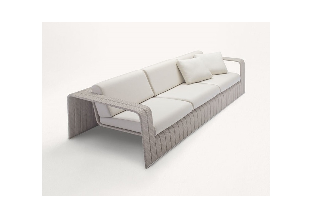 Frame firmato da Francesco Rota per Paola Lenti è un divano modulare per esterni che può essere combinato in più modi. I cuscini di scocca, sedile e schienale sono disponibili in diversi rivestimenti.
