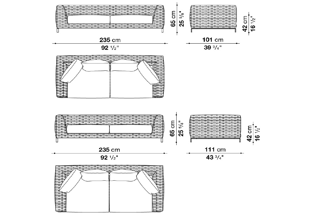 | Dimensioni | 235 x 101 x H 65 cm; 235 x 111 x H 65 cm. |