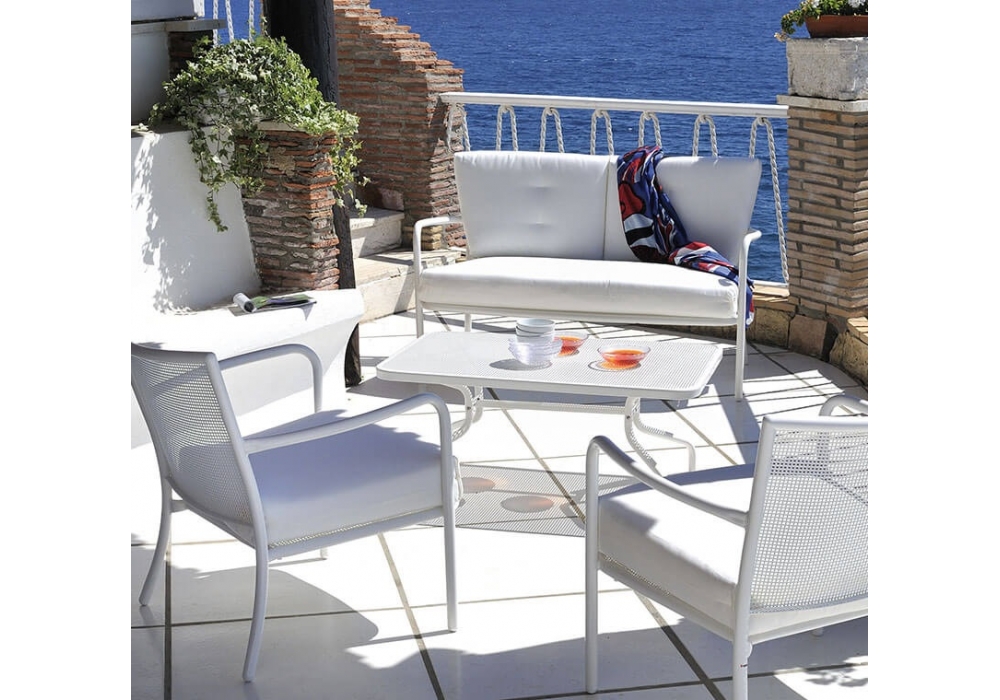 Athena firmato da Emu è un bellissimo divano 2 posti dallo stile classico per un’atmosfera conviviale ma ricercata. Questa collezione è caratterizzata da un inconfondibile motivo ornamentale in lamiera intrecciata, che dona eleganza e carattere alla collezione. La collezione Athena è una famiglia di arredi che comprende sedute, tavoli e arredi lounge per ogni momento di relax all’aperto. Le forme avvolgenti e morbide di sedute e chaise longue si combinano con delicatezza ed equilibrata eleganza. Disponibile in diversi colori. Su richiesta, i cuscini seduta e schienale sono disponibili in 3 diversi colori.