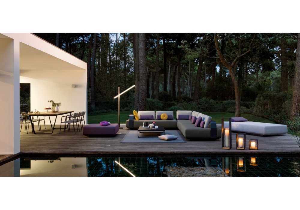 Kumo firmato da Lionel Doyen per Manutti è un divano con struttura in alluminio e rivestimento in tessuto. Braccioli e schienali sono facilmente regolabili e possono essere spostati trasformando Kumo. Questo divano è un invito a crearsi un angoli personalizzato all’aperto. Disponibile in differenti finiture.