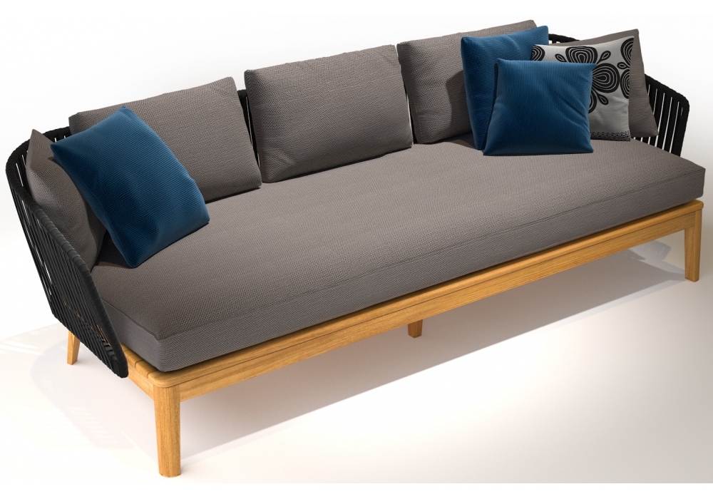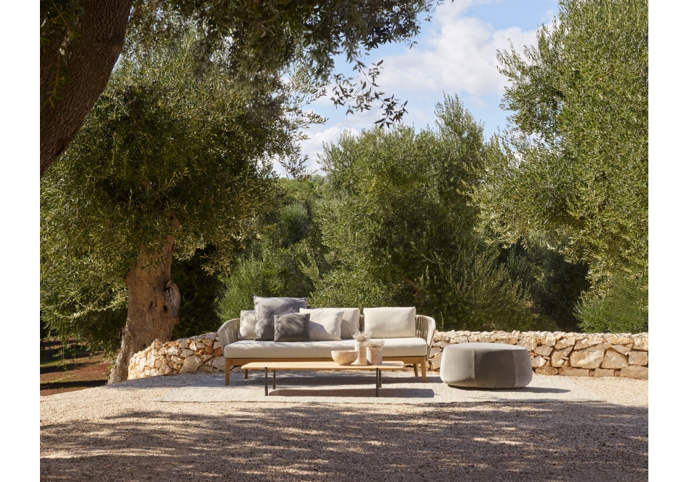 Mood firmato da Studio Segers per Tribù è un divano con struttura in teak e scocca intrecciata in Tricord, in diverse finiture. Il cusc di seduta è imbottito e rivestito con diversi tessuti e colori.