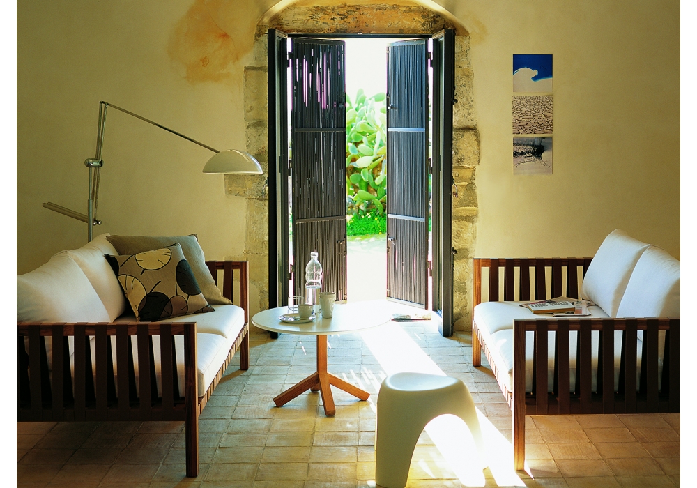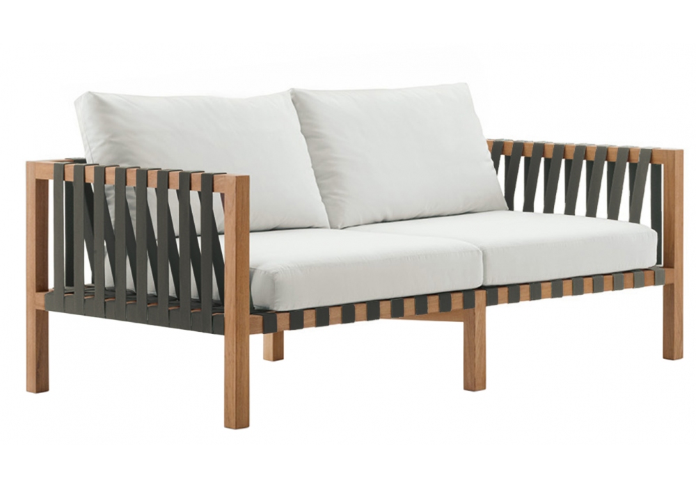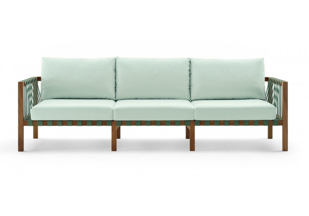 Mistral firmato da Rodolfo Dordoni per Roda è un divano con struttura in teak e cuscini in tessuto. La struttura in massello di teak viene proposta con cinghie color grey, tabacco o verde oliva. Disponibile in due dimensioni.