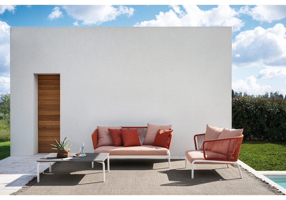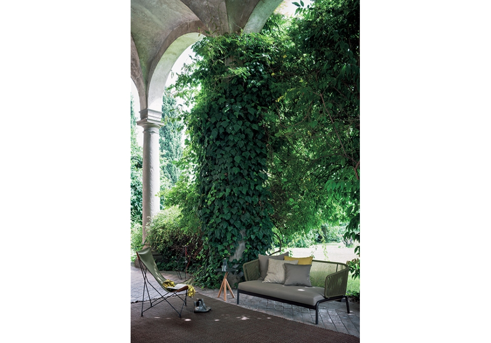 Spool firmato da Rodolfo Dordoni per Roda è un divano con struttura in acciaio inox verniciato a polvere e corde elastiche in poliestere fissate alla struttura con ganci in acciaio inox. Spool è una collezione dal design dirompente, un perfetto equilibrio tra forza e leggerezza, che non trascura il comfort delle sedute, in grado di accogliere un’abbondanza di soffici cuscini. Disponibile in due dimensioni.