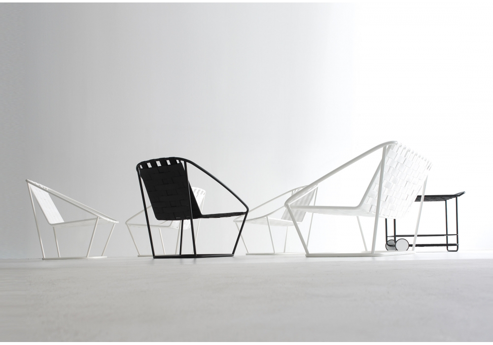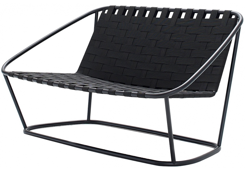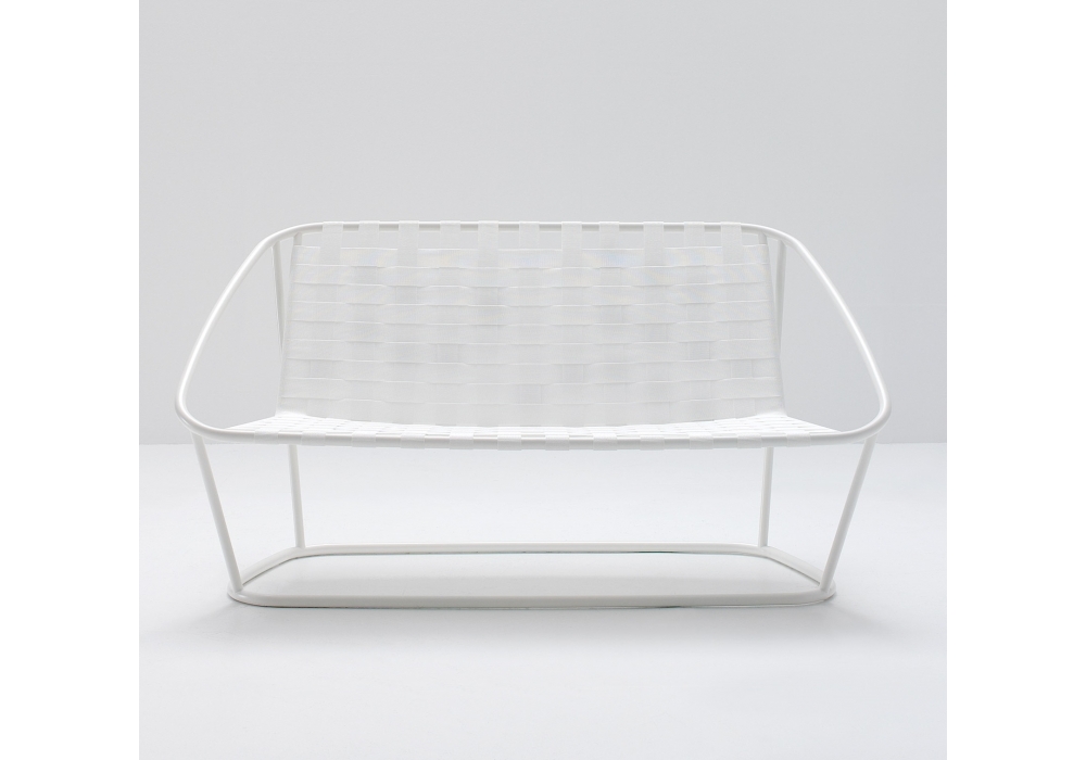 Cloud firmato da Carlo Colombo per Arflex è un divanetto per esterni con struttura in acciaio inox verniciato e cinghie in gomma sintetica.