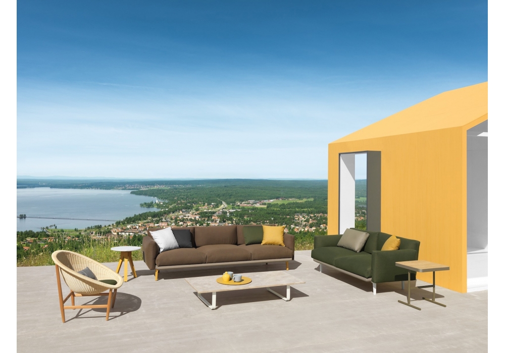 Boma disegnato da Rodolfo Dordoni per Kettal è un divano con base e piedini in alluminio verniciato. I cuscini sono imbottiti e rivestiti in tessuto adatto all'uso esterno. Boma è disponibile in diverse finiture, modelli di piedini e dimensioni.