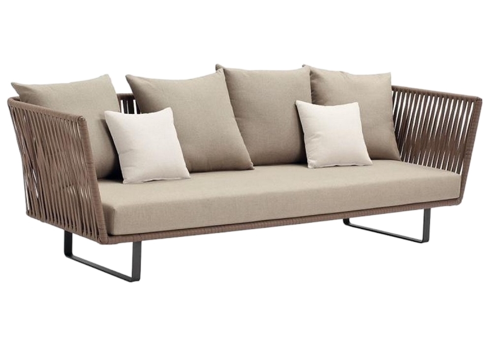 Bitta firmato da Rodolfo Dordoni per Kettal è un divano 3 posti con telaio in alluminio verniciato e base in alluminio verniciato o legno teak naturale. La scocca è rivestita in corda sintetica con cuscinatura imbottita e rivestita in tessuto adibito all'uso outdoor. Bitta è disponibile in differenti finiture.