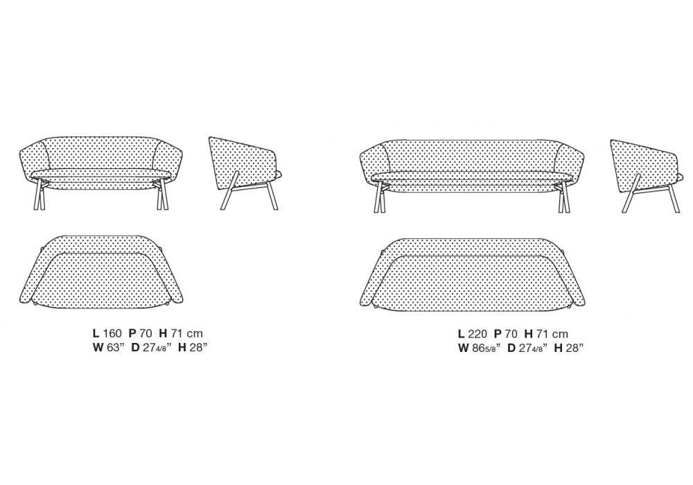 | Dimensioni | L 160 x W 70 x H 71 cm; L 220 x W 70 x H 71 cm. |