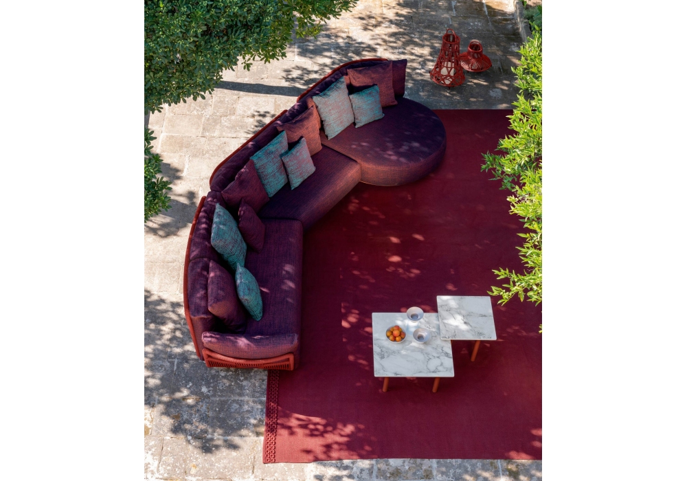 Scacco disegnato da Ludovica e Roberto Palomba per Talenti è un divano modulare per esterni, realizzato in alluminio e corda disponibile in diverse finiture.