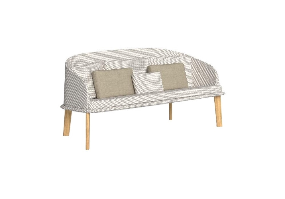 Cleo Wood Love Seat disegnato da Marco Acerbis per Talenti è un divanetto per esterni, realizzato in teak o teak naturale e seduta in tessuto disponibile in diverse finiture.