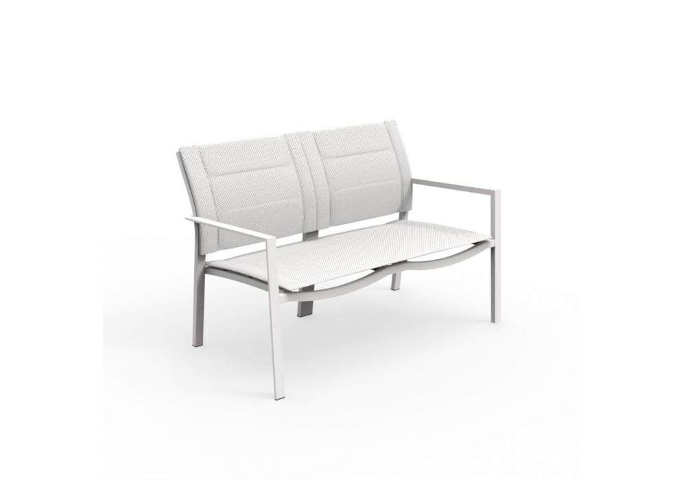 Touch Living disegnato per Talenti è un divano per esterno con struttura in alluminio e rivestimento seduta in textilene, disponibile in diverse finiture.