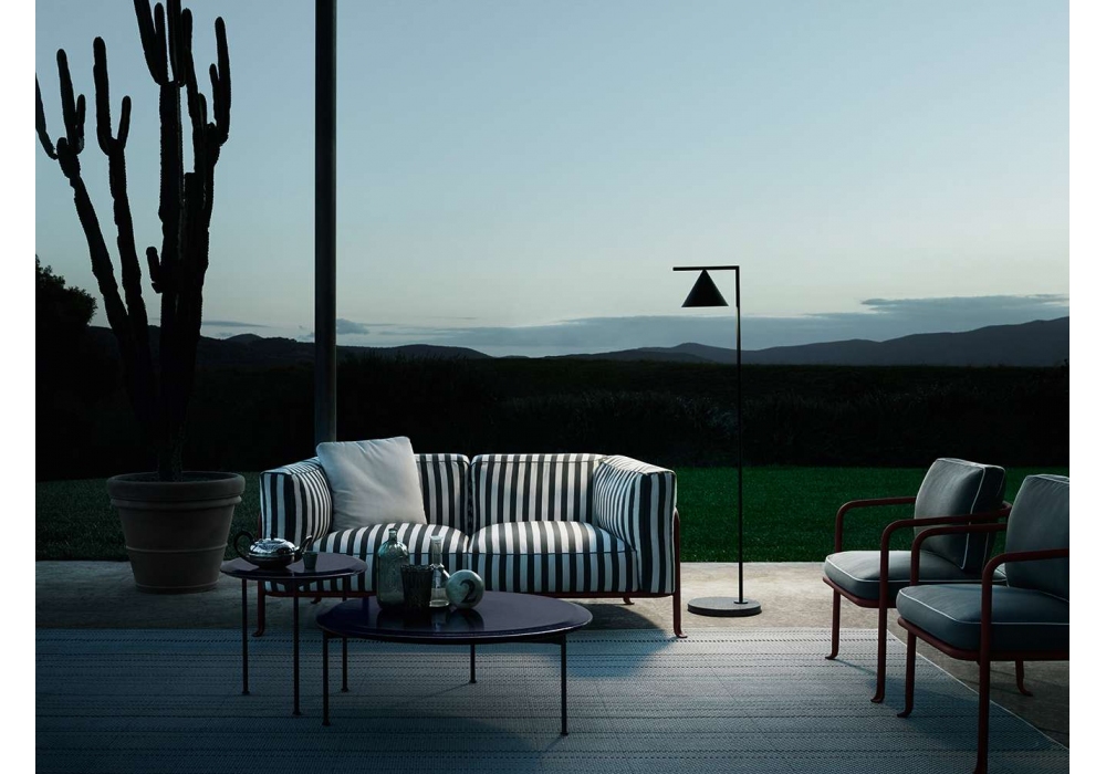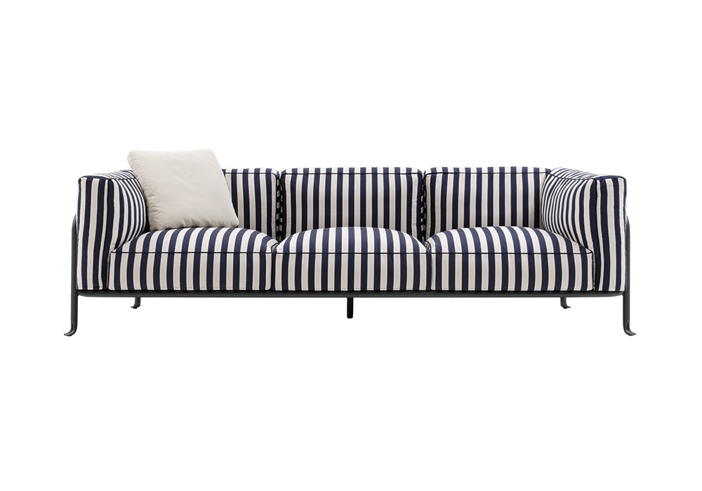 Borea firmato da Piero Lissoni per B&B Italia Outdoor è un divano con struttura in alluminio verniciato e rivestimento in tessuto sfoderabile con profili in differenti finiture.