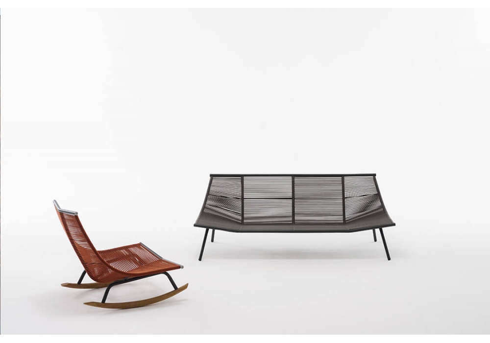 Laze firmato da Gordon Guillaumier per Roda è un divano per esterni con struttura in acciaio inox verniciato a polvere e scocca composta da corde in poliestere o acrilico.