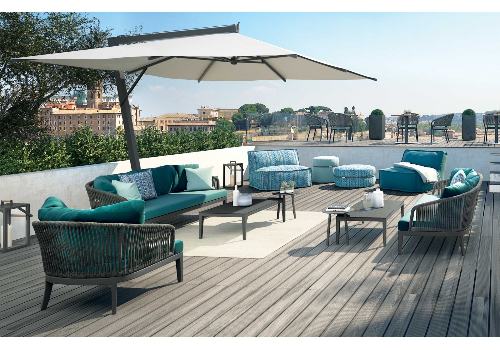 Dream 2.0 firmato da Atmosphera è un divano da esterno realizzato con struttura in alluminio e corda. Rivestimento cuscini schienale e seduta in tessuto. Su richiesta è possibile aggiungere cuscini decorativi di diverse dimensioni.