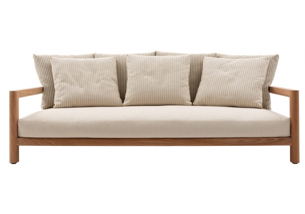 Pablo firmato da Vincent Van Duysen per B&B Italia Outdoor è un divano con struttura in legno di teak naturale, supporto dello schienale in tessuto Laguna o Lamar. Cuscini di seduta e schienale disponibili con rivestimento in tessuto.