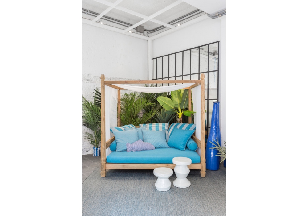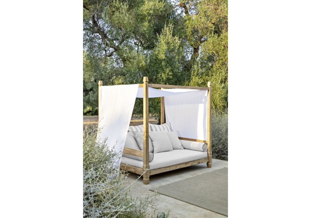 Jeko 07 firmato da Paola Navone per Gervasoni è un divano a baldacchino in ECOTeak e cuscini sfoderabili.