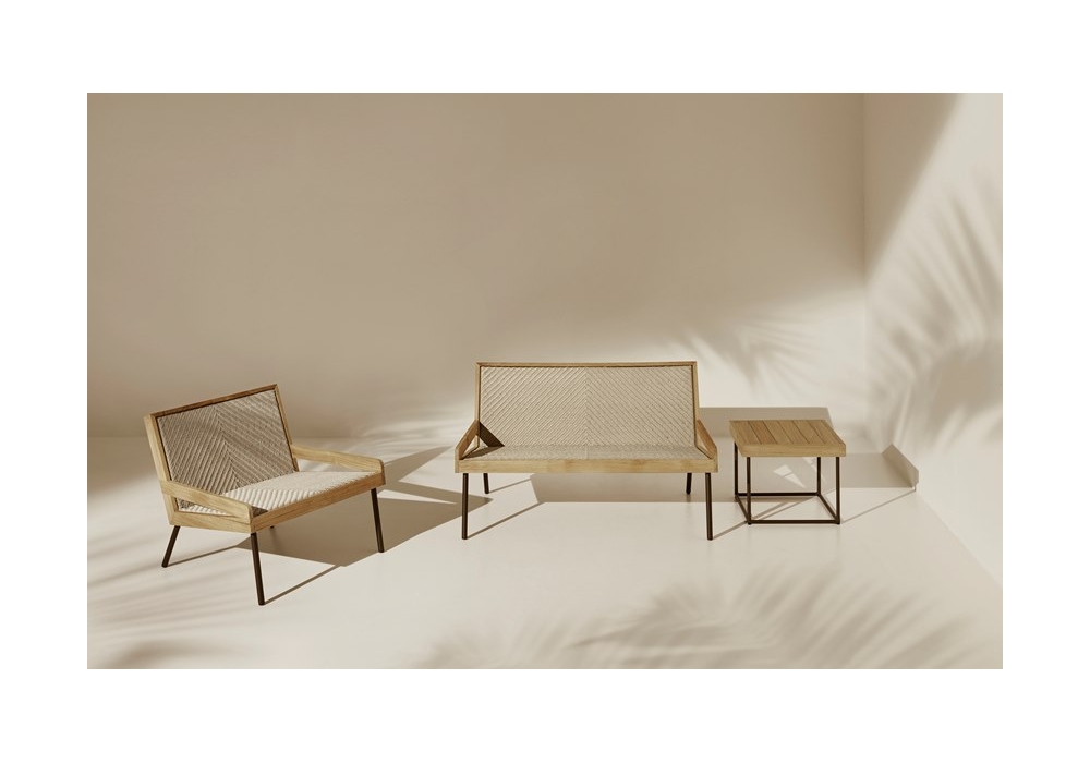 Allaperto Nautic firmato da Matteo Thun, Antonio Rodriguez per Ethimo è un divano a due posti strutturato in legno teak e metallo con rivestimento in corda. Allaperto Nautic è disponibile anche con cuscinatura in differenti finiture.